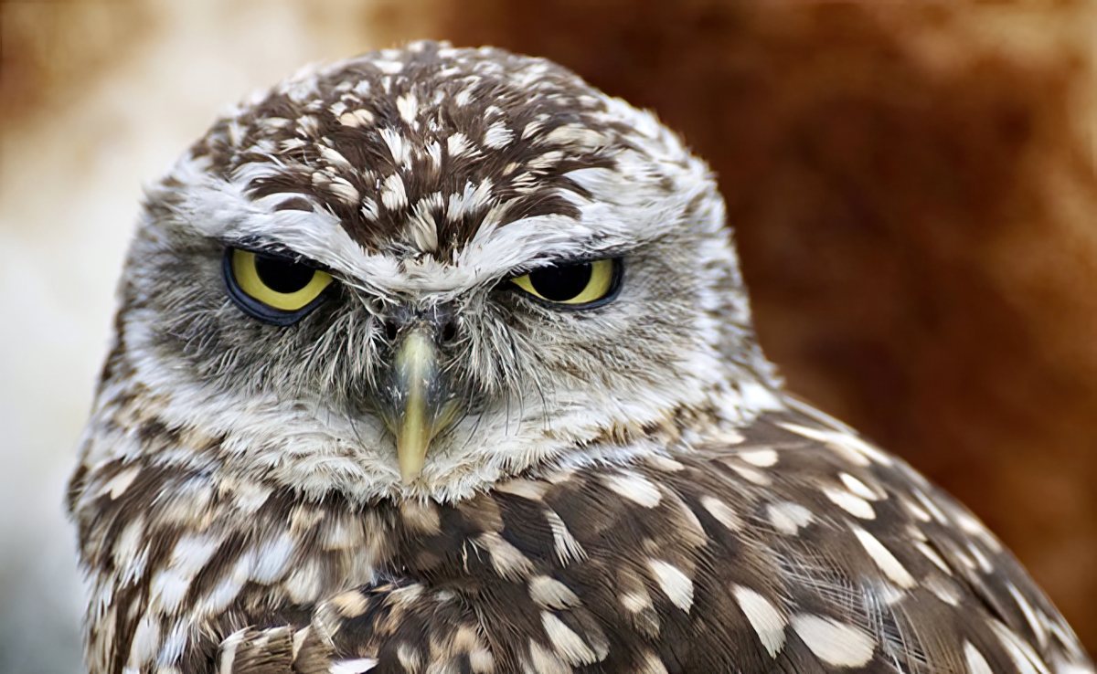 • Plumage : Brun tacheté de blanc, avec des yeux dorés très expressifs.