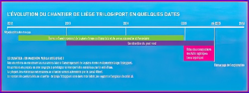 Grâce à Liège Trilogiport, le Port autonome de Liège pourra, encore à l’avenir, accueillir de nouvelles entreprises et conforter la progression de son trafic fluvial, tout en assurant le développement économique durable de la région liégeoise. Véritable "village logistique" Liège Trilogiport constitue l’une des premières actions liégeoises en matière de redéploiement économique. Les travaux de construction de la plate-forme se dérouleront en deux phases : D’une part, les travaux préparatoires de Liège Trilogiport ont débuté le 24 novembre 2008 et leur durée d’exécution est estimée à 200 jours ouvrables (environ 10 mois). D’autre part, suivront ensuite les travaux d’infrastructure et d’équipement qui sont estimés, quant à eux, à 700 jours calendrier. La plate-forme multimodale de Liège Trilogiport devrait être opérationnelle d’ici fin 2011 et devrait créer environ 2000 emplois.