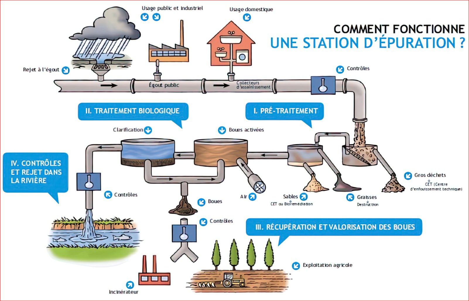 Note importante : Une station d'épuration a pour but d'assainir les eaux usées urbaines avant leur rejet dans les cours d'eau. Elle n'a PAS pour objectif de rendre les eaux usées potables.